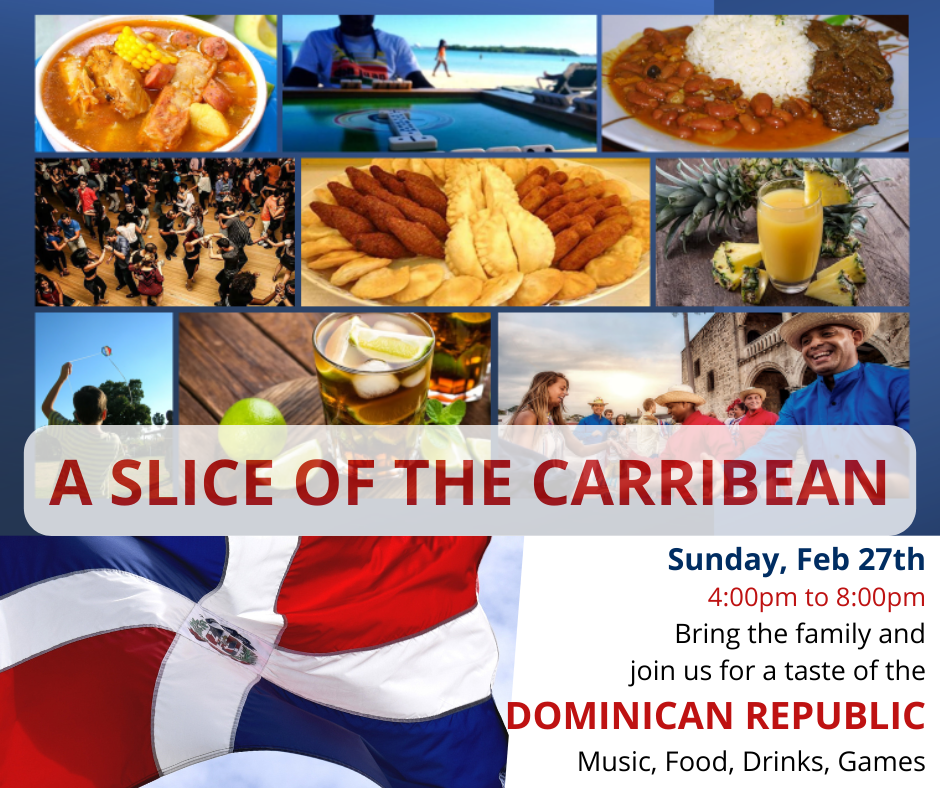 An evening where every member of your family will find something fun and delicious to enjoy from the Dominican Culture. Dance to merengue, eat sancocho, play dominos, drink natural fruit juices or some rum & coke..... and so much more!