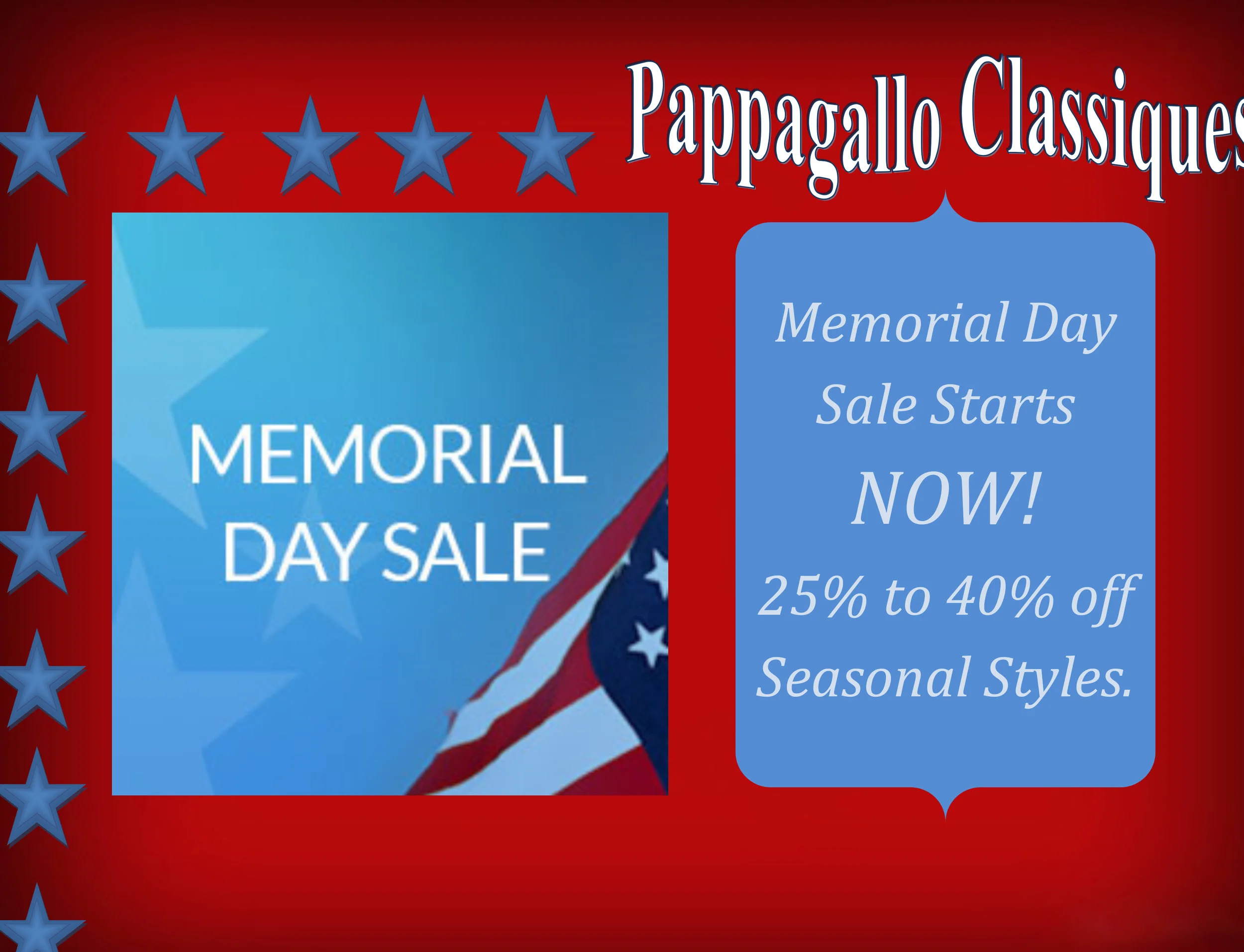 Take 25-40% off seasonal styles through Monday, May 29th at Pappagallo Classiques.
