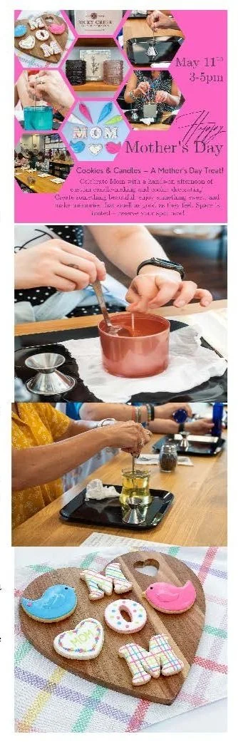Join us for a sweet and creative afternoon as we celebrate moms with two hands-on experiences: personalized candle making and cookie decorating!